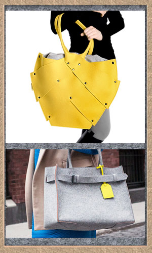 серый меланжевый войлок в создании женской одежды и аксессуаров, подметив удивительно современный характер материала.